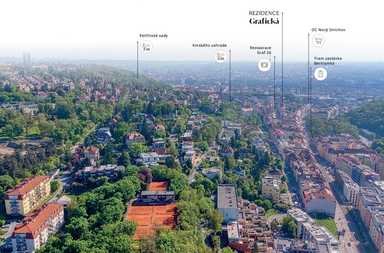Rezidence Grafická představuje výjimečné propojení historického kouzla, moderního komfortu a poklidného zázemí vnitrobloku. Zosobňuje ideální místo pro městský život s nádechem soukromí i jistou investici do nemovitostis trvalou hodnotou.